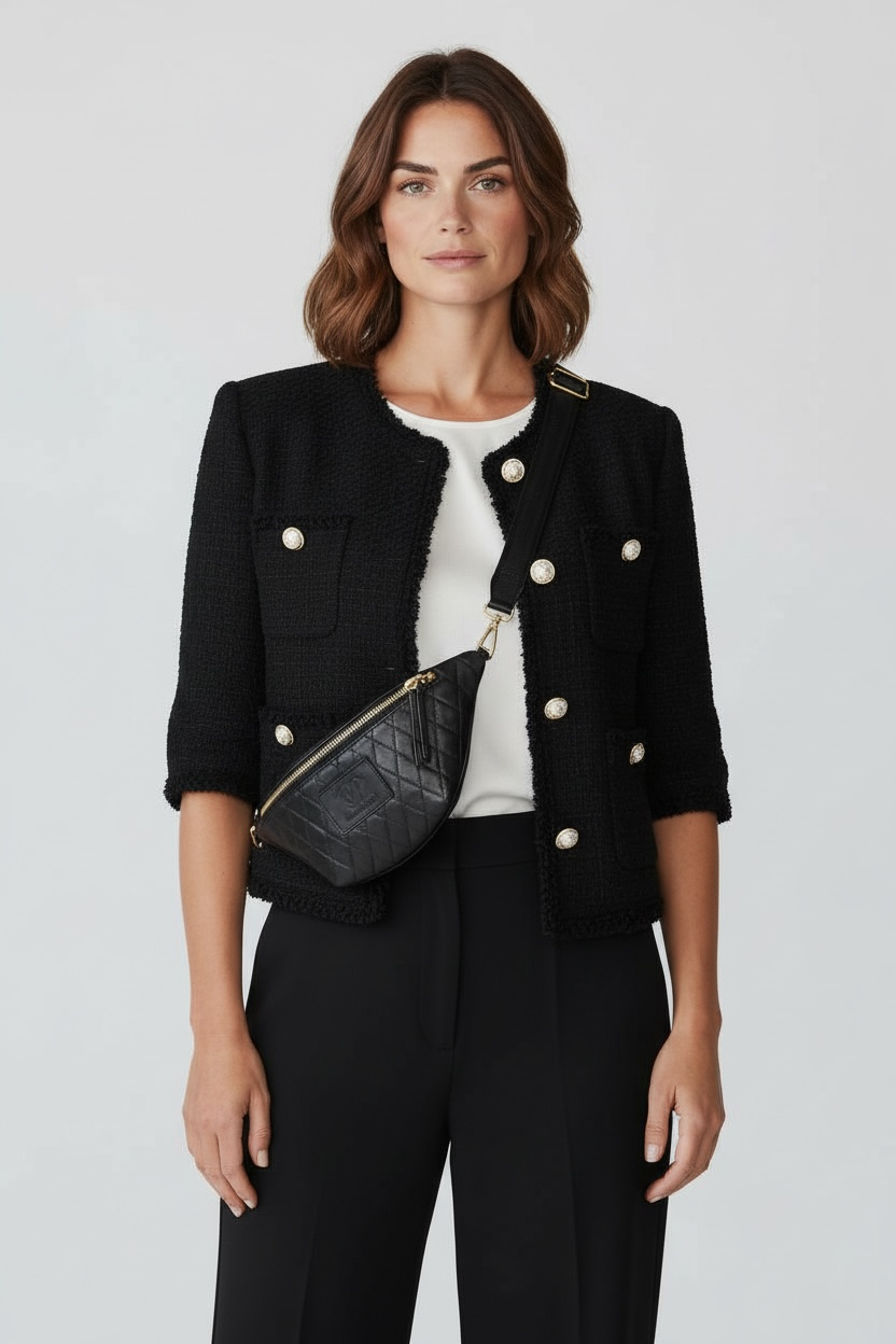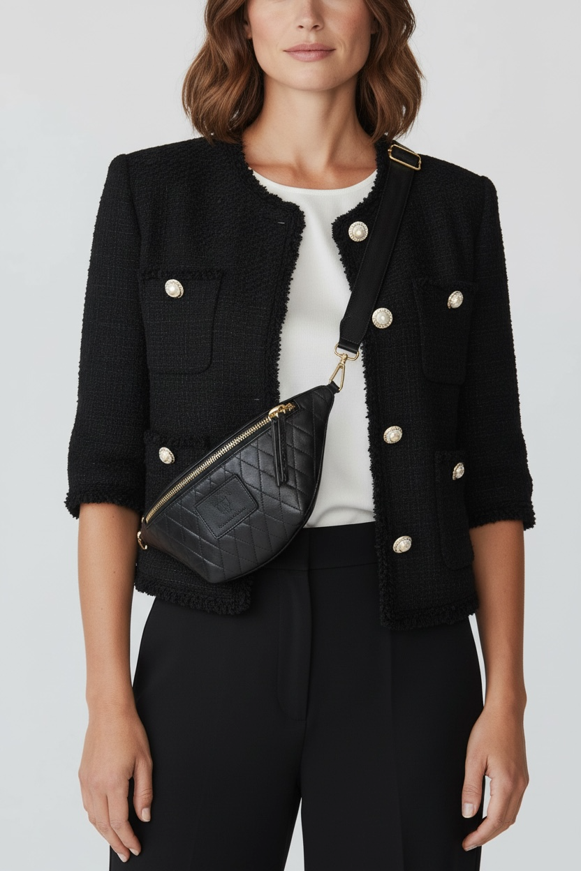 100% δερμάτινο. Μικρό χιαστί τσαντάκι σε μαύρο καπιτονέ δέρμα με χρυσά μέταλλα. Διαθέτει ιμάντα και μία εσωτερική θήκη. Υπερήφανα Ελληνικό σχεδιασμένο αποκλειστικά από την Nanouyia Carouzou.