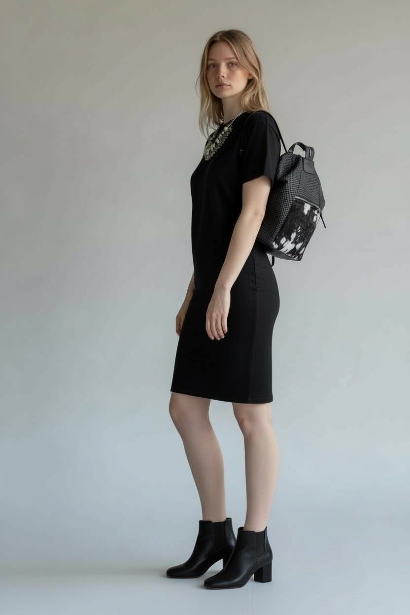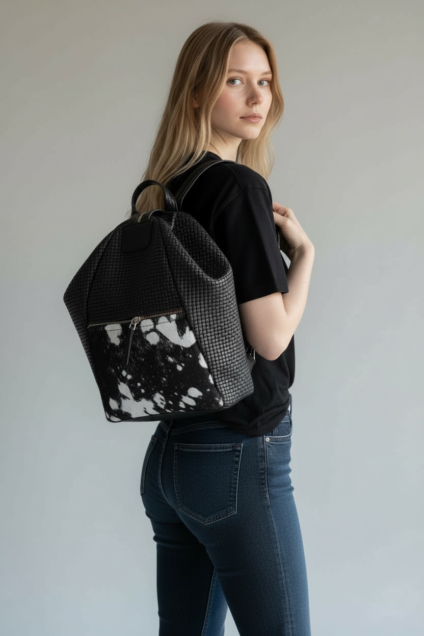 Daily medium-big black leather back bag from unique leather details . It offers an external zipper for those things you want to find immediately.