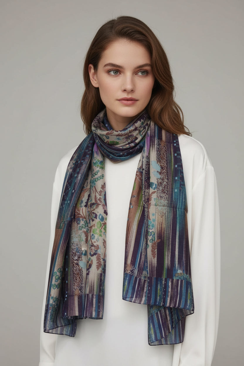 MULTI MAGENTA ART SILK FOULARD