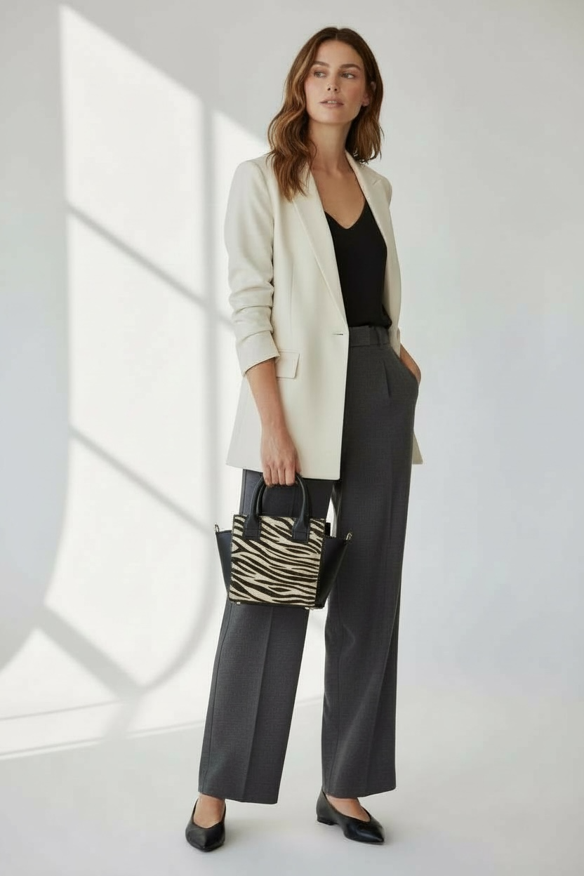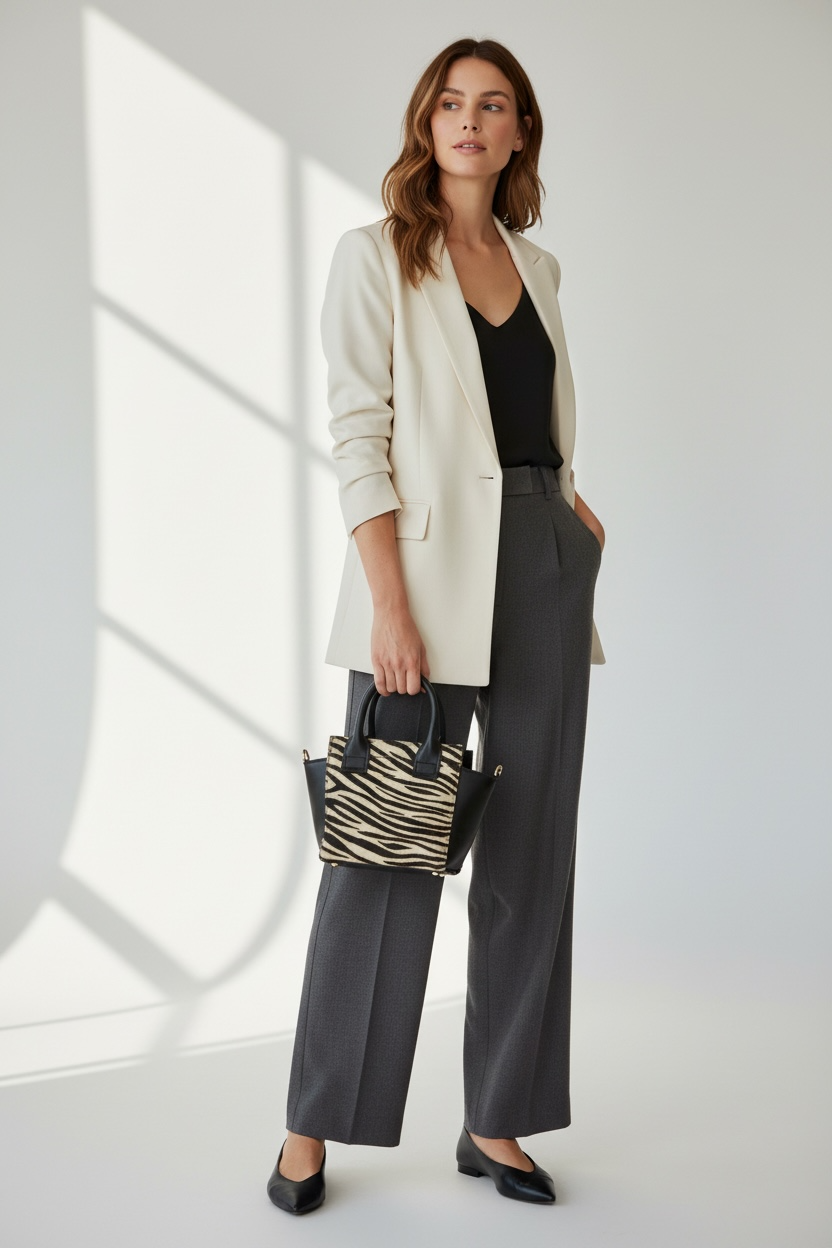 Δερμάτινη μικρή τσάντα χειρός με zebra-print calf-hair στην μία πλευρά και μαύρο alligator-print στην άλλη. Διαθέτει φερμουάρ και έξτρα ιμάντα που αυξομειώνεται για να κρατηθεί χιαστί.