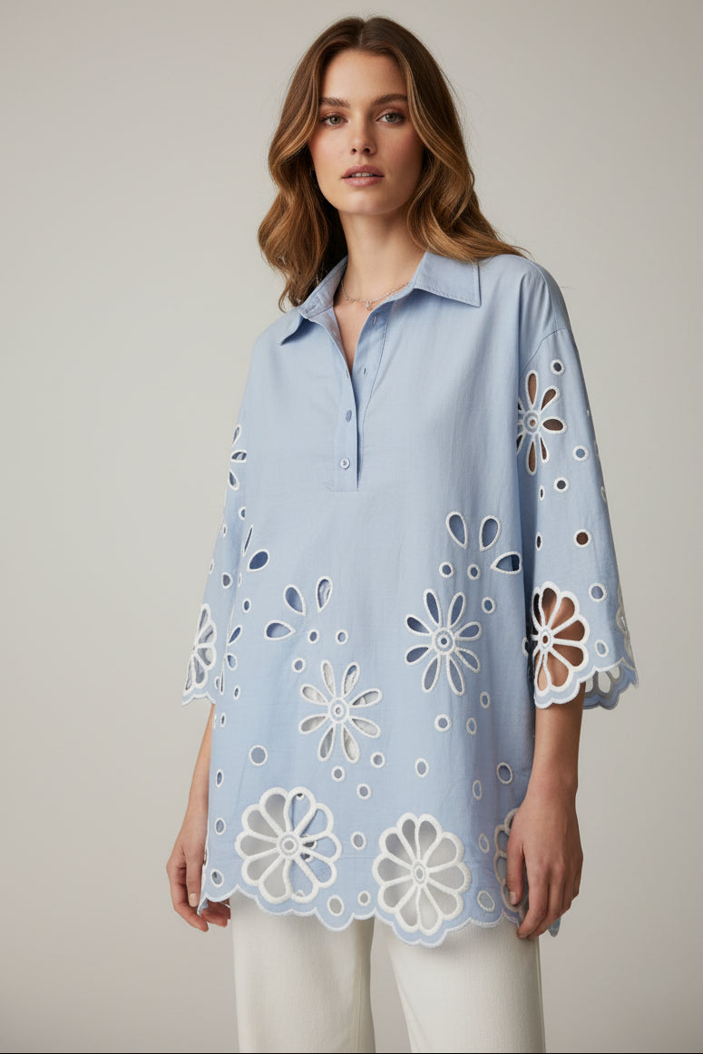LASER CUT ART FLOWERS COTTON SHIRT