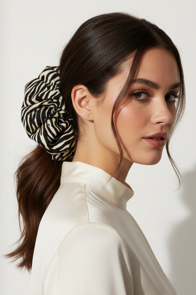 BLACK ZEBRA-PRINT HAIR SCRUNCH
