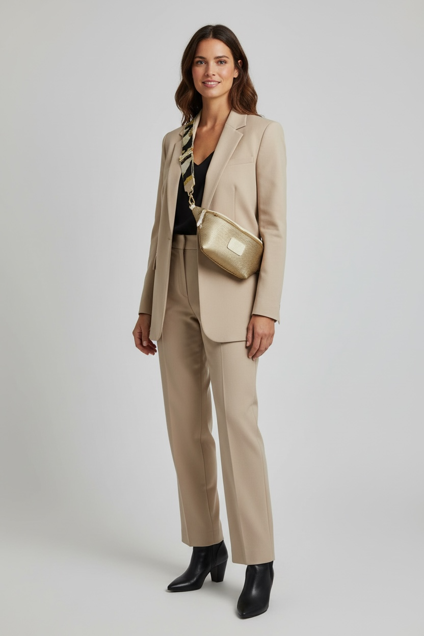 XL gold and vanilla leather belt bag