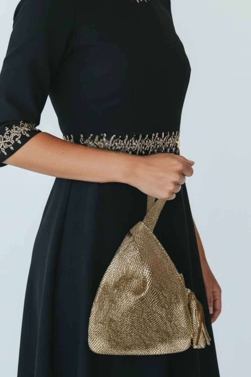 Μοντέρνο χρυσό δερμάτινο τσάντακι το οποίο κρατιέται στο χέρι. Διαθέτει φερμουάρ στο πλάι και μία εσωτερική θήκη. Ιδανικό για γάμους, βαπτίσεις και βραδινές εξόδους.