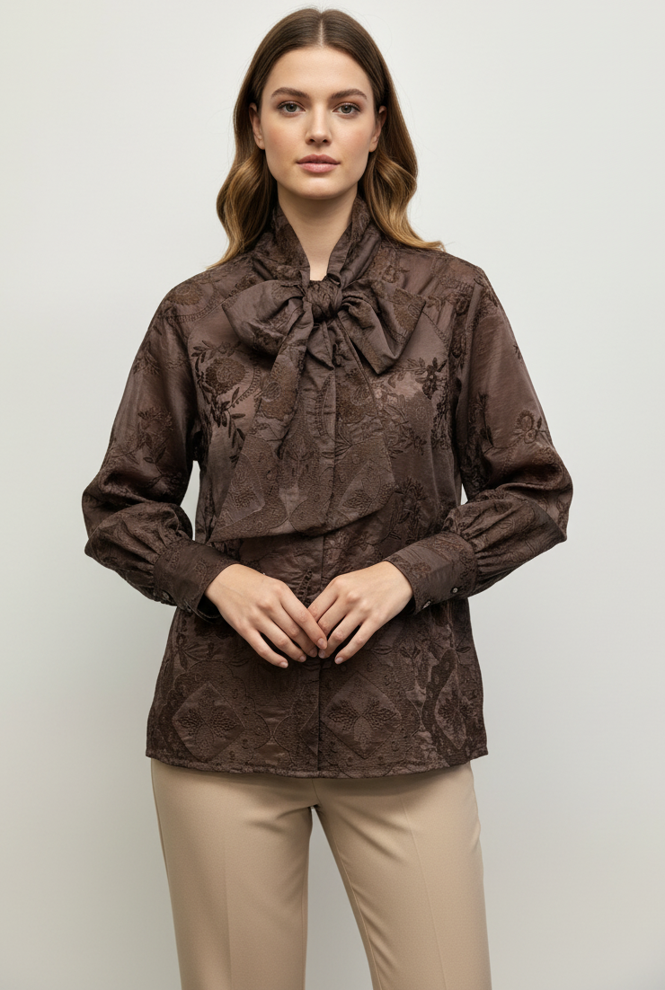 BROWN BOW NECK ART BLOUSE